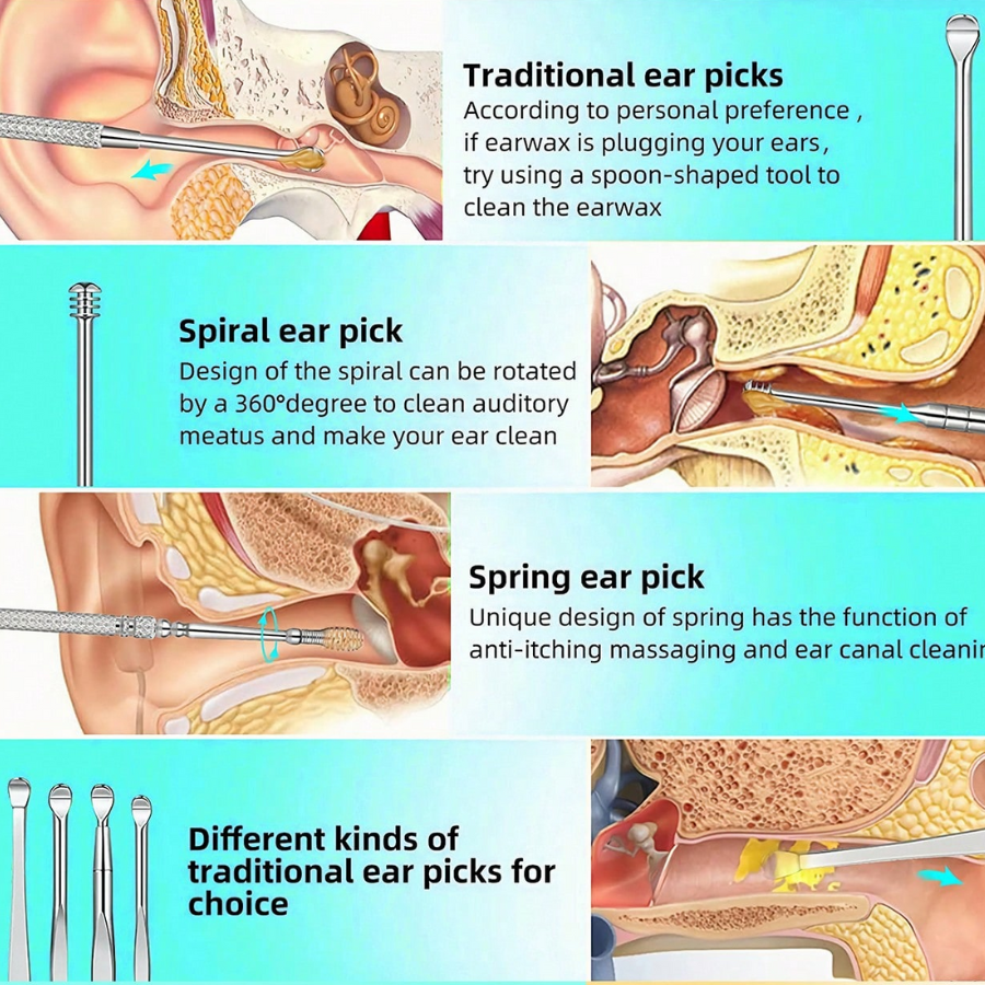 Tired of unsafe cotton swabs and ineffective cleaning methods? The Ear Cleaning Kit is your all-in-one solution for safe, gentle, and effective ear care! Designed with precision tools and soft silicone tips, this advanced kit removes earwax effortlessly—boosting your comfort, hygiene, and hearing clarity—all in just a few minutes at home!