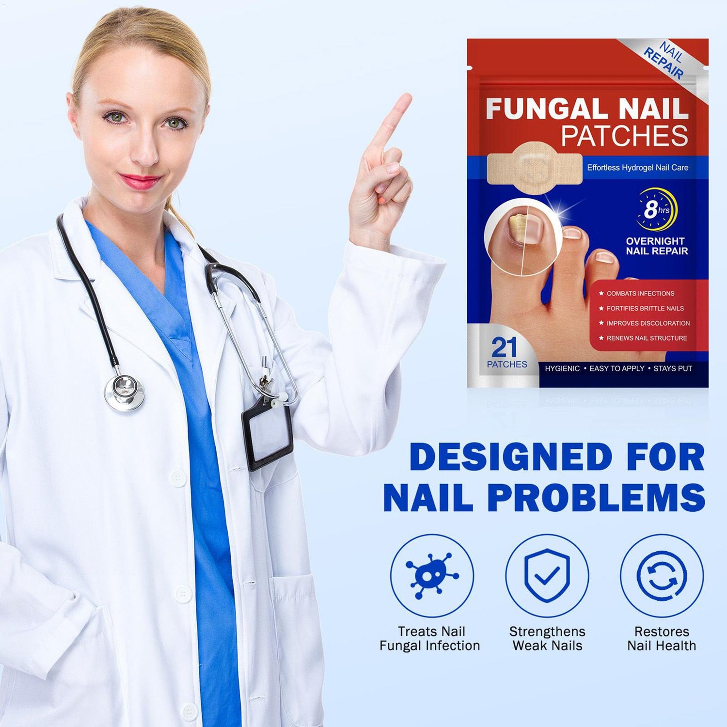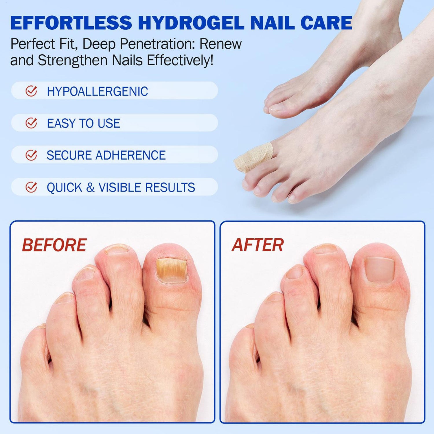 Imagine a treatment that works continuously, targeting fungus while supporting nail recovery. With our Fungal Nail Patches, you get a powerful formula that tackles key nail concerns to help you look and feel your best—every day: